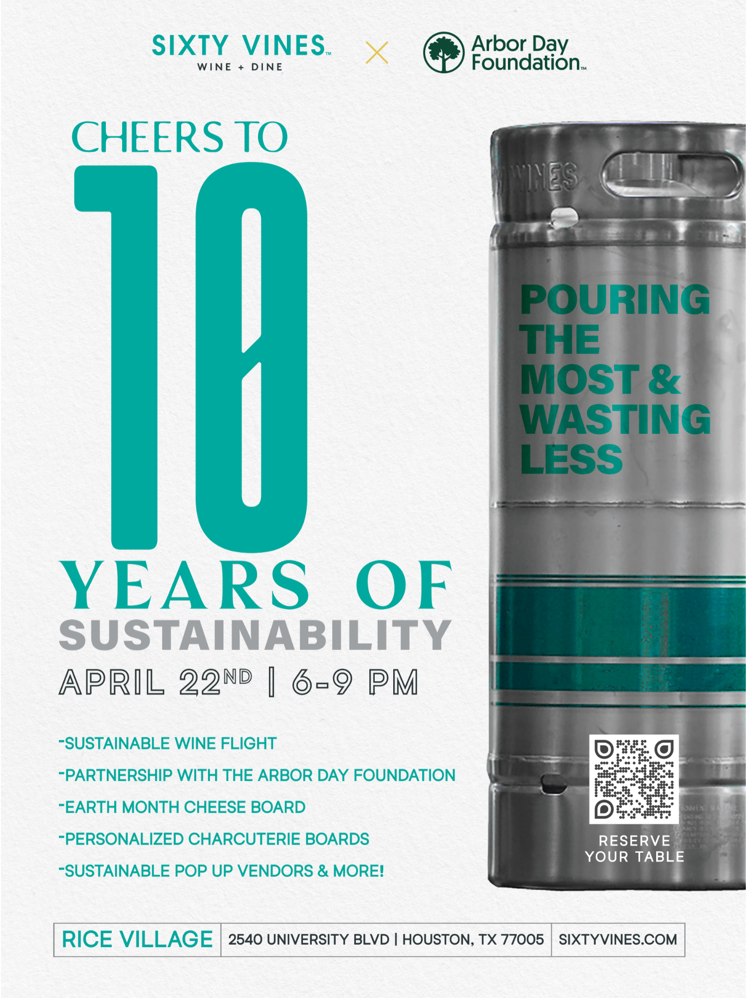 Cheers to 10 years of sustainability! Make plans to be at Sixty Vines on April 22nd from 6-9pm to enjoy: Sustainable Wine Flight Partnership with the Arbor Day Foundation Earth […]